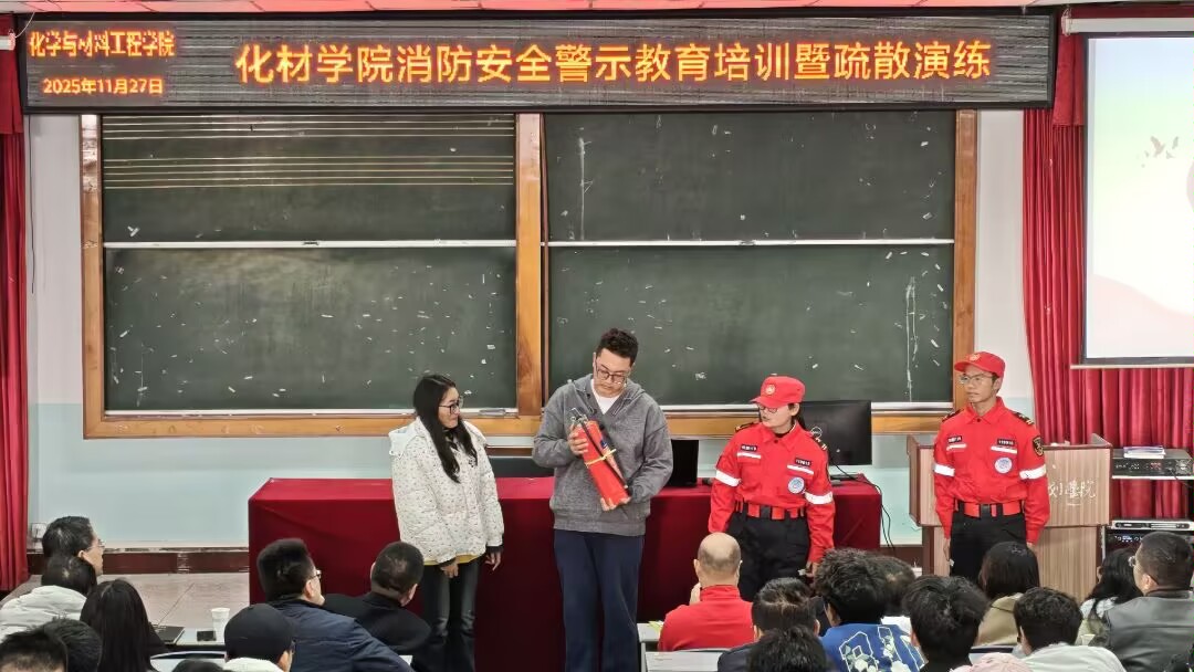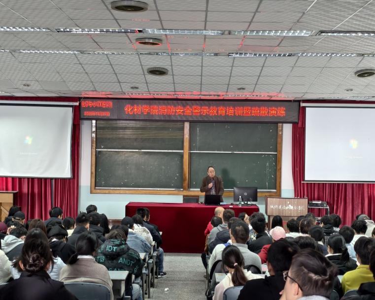 为强化师生消防安全意识,提升应急避险与初期火灾处置能力,11月27日,化学与材料工程学院在游仙校区二教楼605学术厅开展了一场意义重大的消防安全警示教育培训,随后在化材实验楼开展了应急演练活动。学校保卫处消防科负责人杨正佳、后勤服务处卫生科杨希医生到现场授课,学院全体师生人参会。