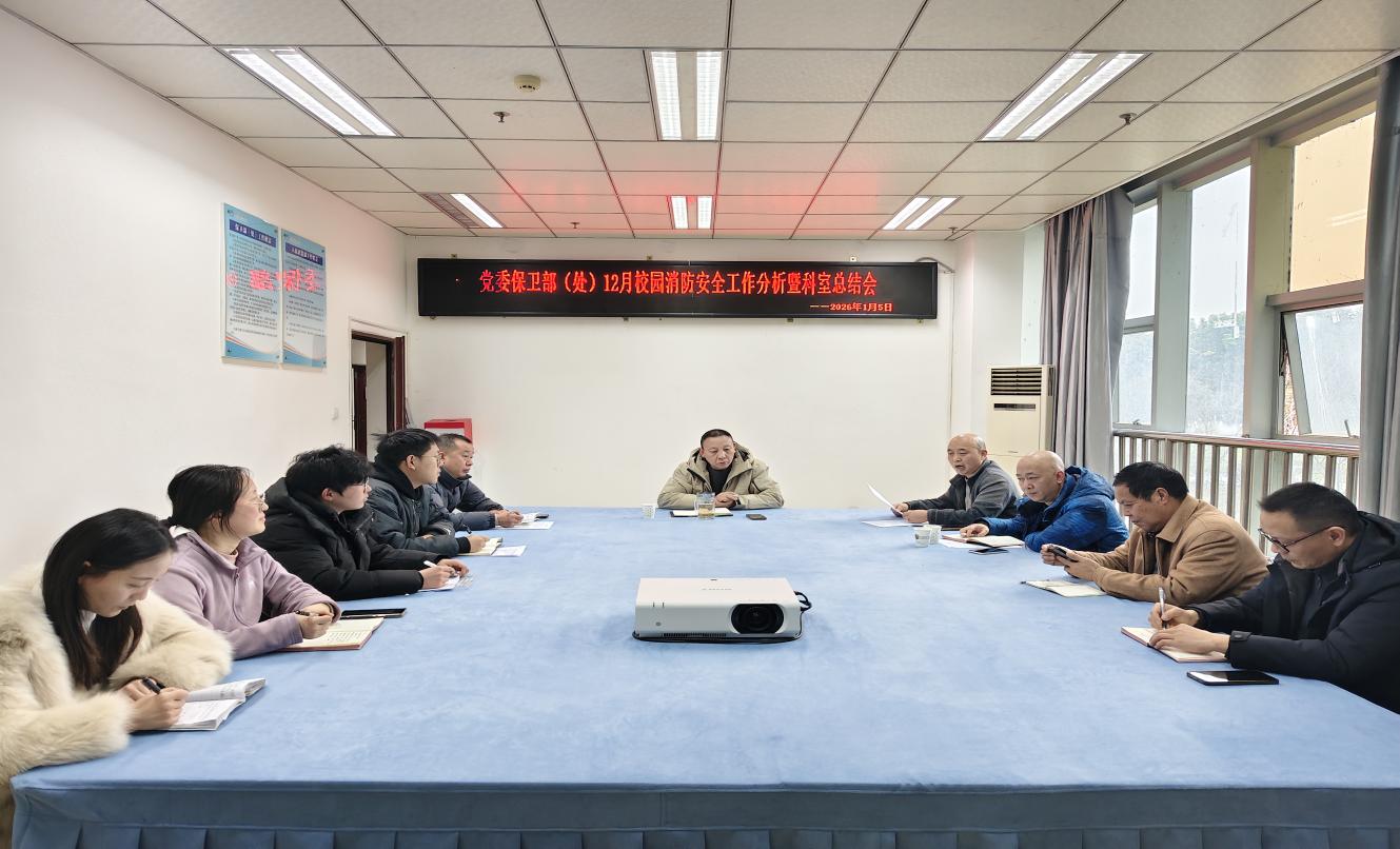 1月5日下午,保卫处在知行楼108会议室召开2025年12月消防安全工作分析暨科室总结会,保卫处相关负责人、消防科全体成员、维保公司工作人员、大学生义务消防队队长参加会议,会议由副处长许洪主持。